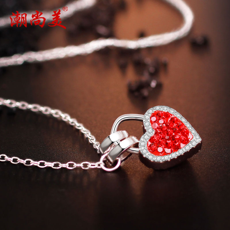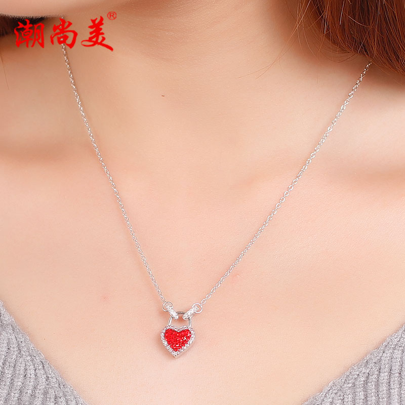 Chao Shangmei love lock necklace pendant s925 silver female clavicle chain Korean version of the simple student Sen Department Japanese and Korean silver chain