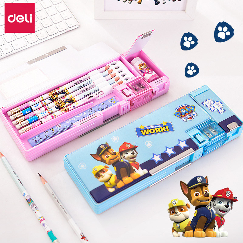 Deli stationery box Primary school kindergarten multi-function pen box Cartoon Woof team pencil box Children's stationery Pikachu girl Boy stationery box Cartoon multi-layer pen box Reading rack Book stand