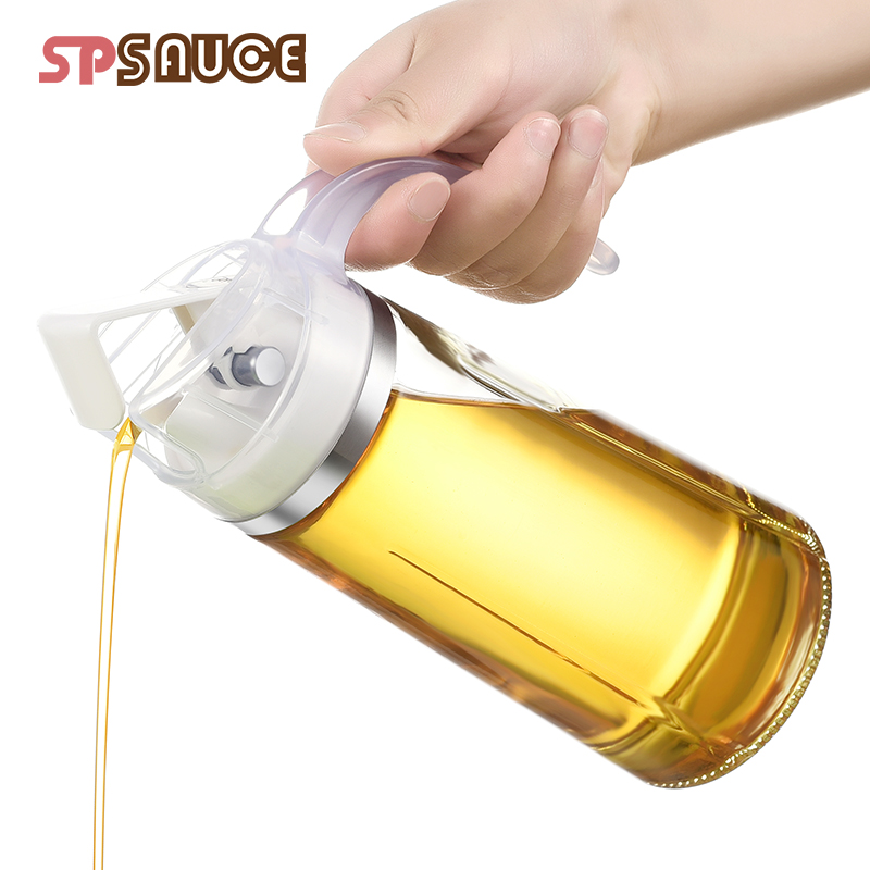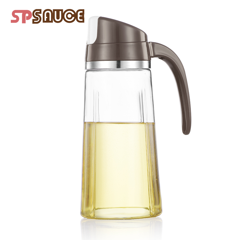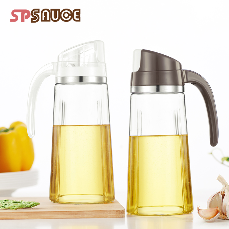 Japan automatic clamshell glass oil pot Kitchen household leak-proof large capacity oil bottle Seasoning bottle Oil vinegar tank Soy sauce tank
