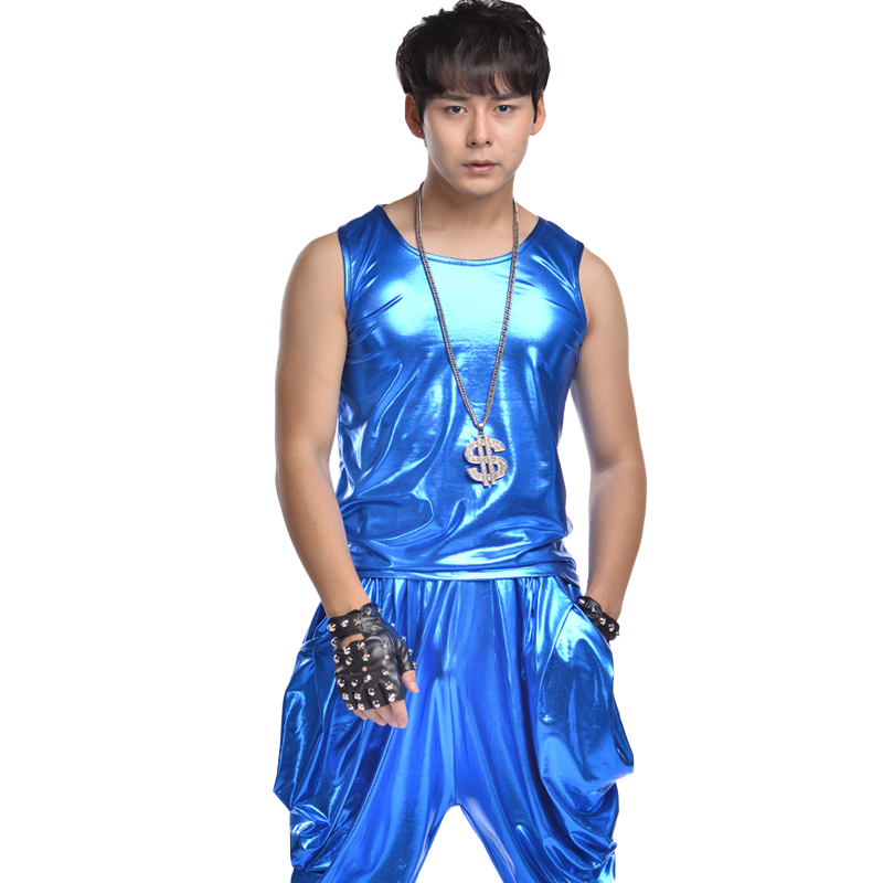 Hairstylist Nightclub stage clothes playjacked undershirt show outdress male singer personality trend strength blue vest