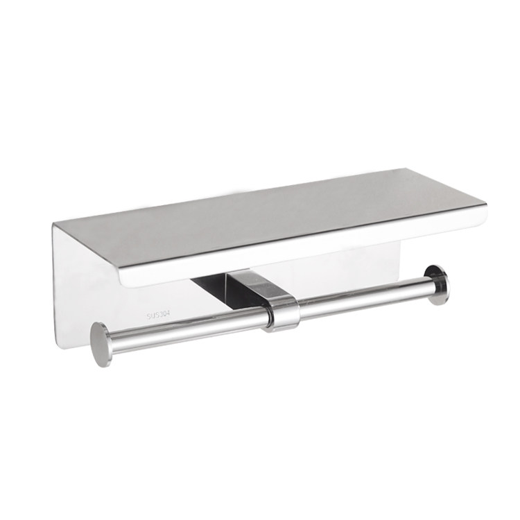 304 stainless steel double tissue holder Powder room toilet paper holder Bathroom mobile phone storage toilet paper holder without hole roll toilet paper holder