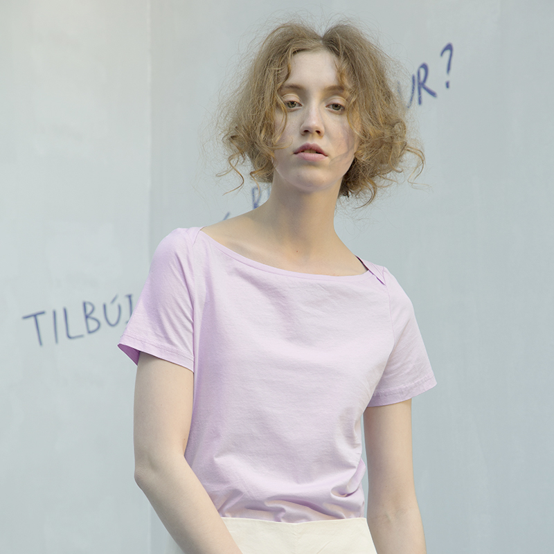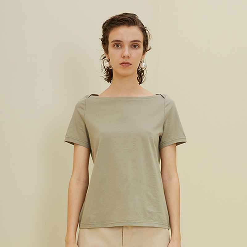 Qingte DIDDI original (non-refundable, non-exchangeable) one-word collar T-shirt white top short-sleeved women