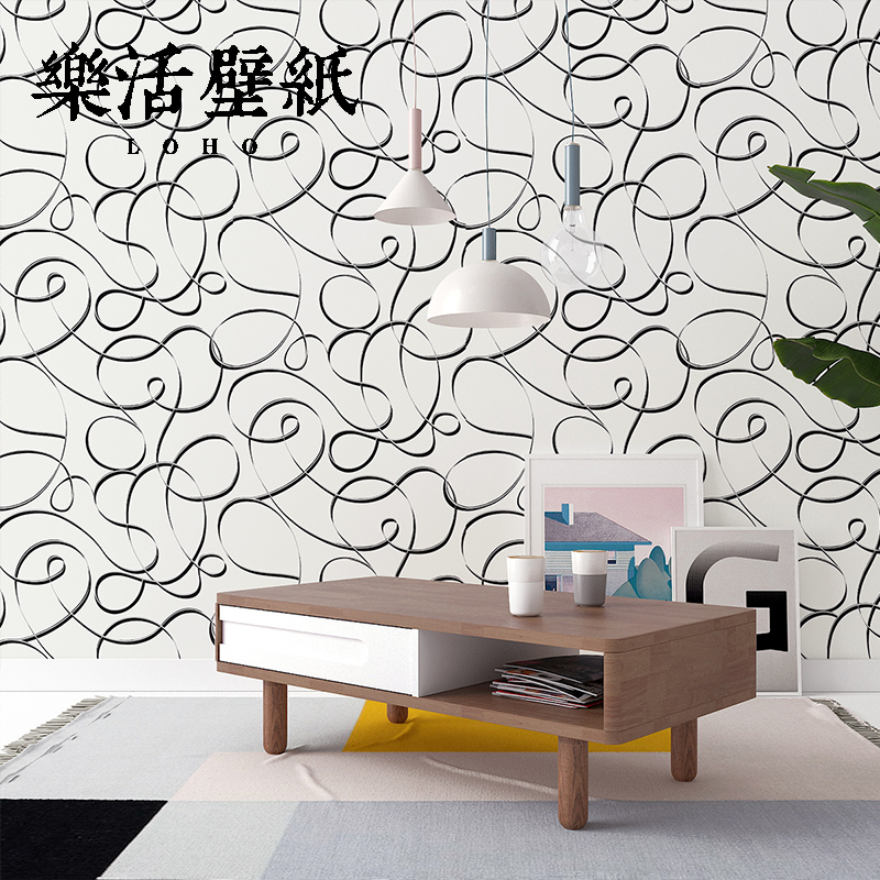 Nordic ins black and white grey Abstract curve wavy wall paper modern minimalist living-room TV background wall wallpaper