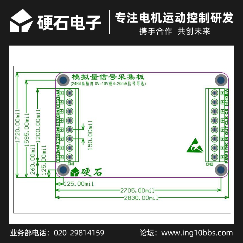 Hard Rock AD7190 24-bit high precision 4-20ma 0-10V SPI interface acquisition 4 ADC analog-to-digital conversion