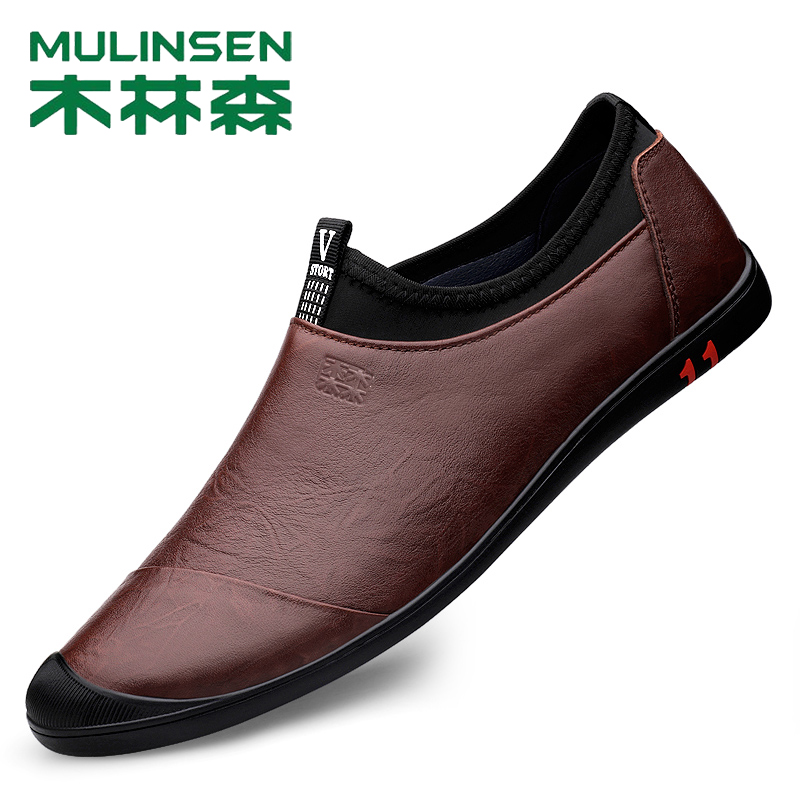 Mulinsen men's shoes business casual leather shoes men's genuine leather breathable soft bottom cowhide middle-aged leap month dad shoes