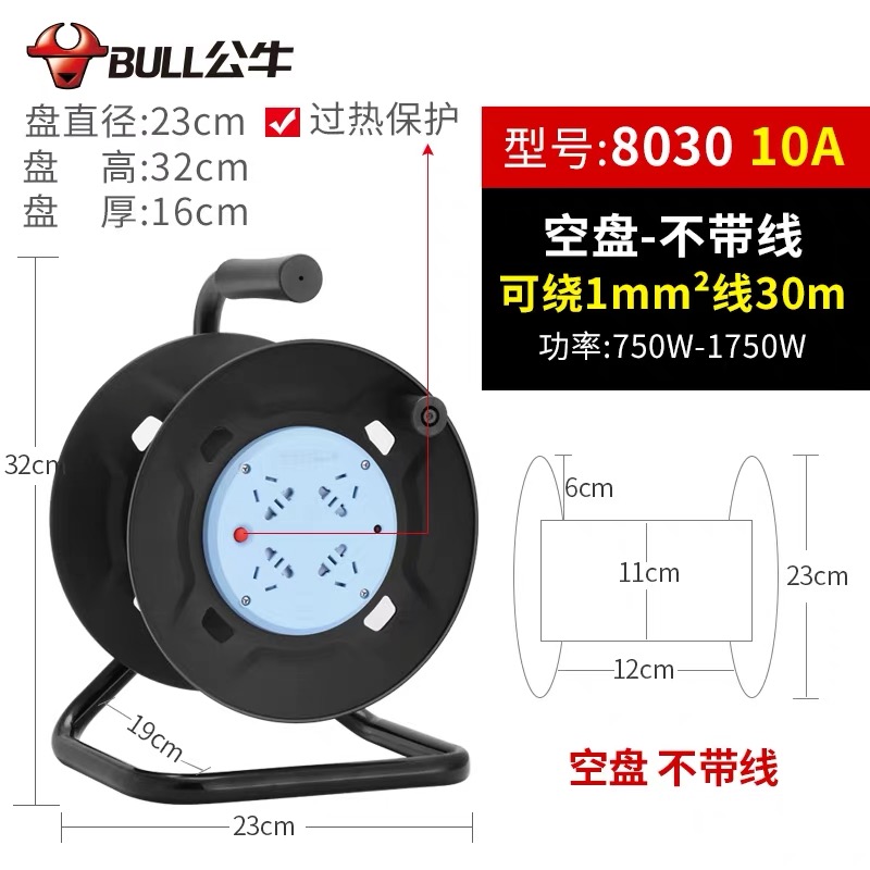 Bull GN-8030 wire disc mobile cable disc roll line disc roller 20 30 40 m socket extension cord