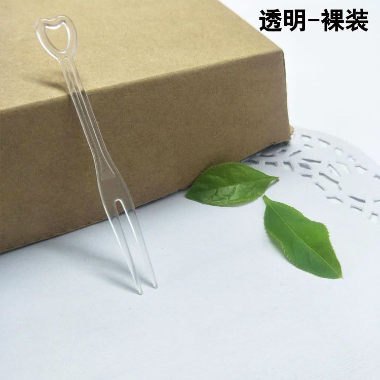 Disposable Independent Packaging Fruit Fork Plastic Fork Transparent Heart-shaped Trial Eating Fork Loving Little Sign 3000 Sub-Taobao