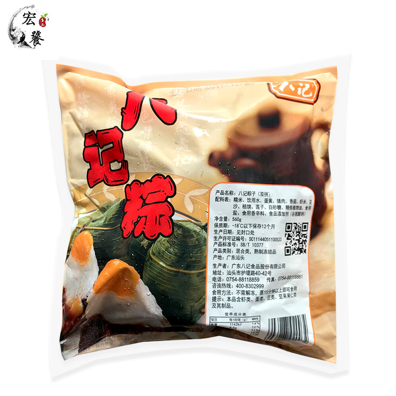 Baji Shuangpin Zongzi Chaoshan Special Egg Yolk Chenpi Bean Paste Salty and Sweet Quick-frozen Meat Zongzi 560g 8 packs