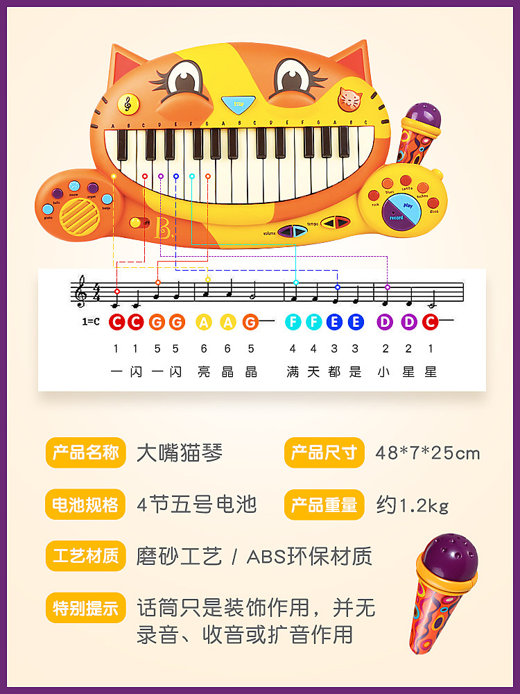 U.S. B Toys Pabile Cat Qin Big Mouth Cat Early Education Educational Baby Electronic Organ Children Beginners Music Toys