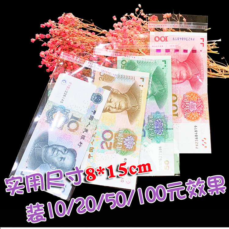 Shake sound banknote Banknote Plastic bag packaging bag Hundred yuan banknote Transparent opp self-adhesive self-adhesive bag Plastic strip bag