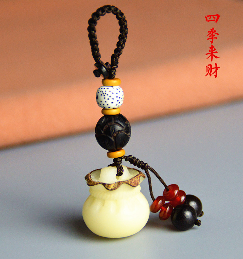 High-end car key chain hand woven Bodhi root Money bag Fukuyako bag Bell Bell Bell Bell men and women Bag Wrap Pendant
