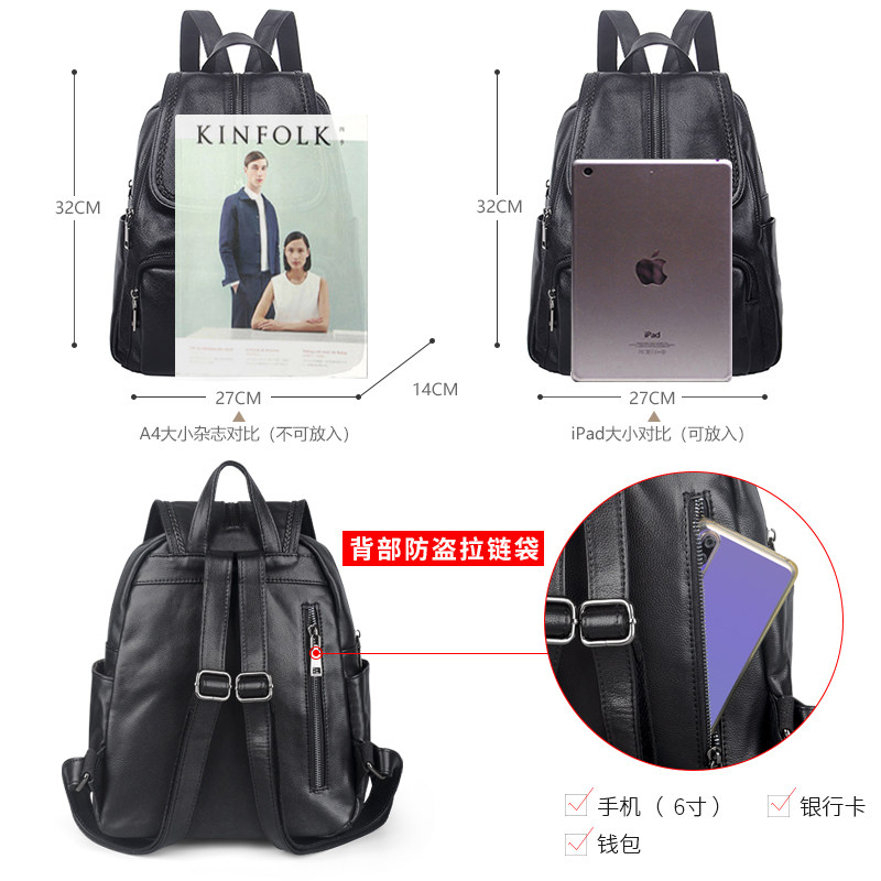 Female soft skin 2023 new Han Edition Tide Tide Top Lady Lady Capacity Travel Backpack