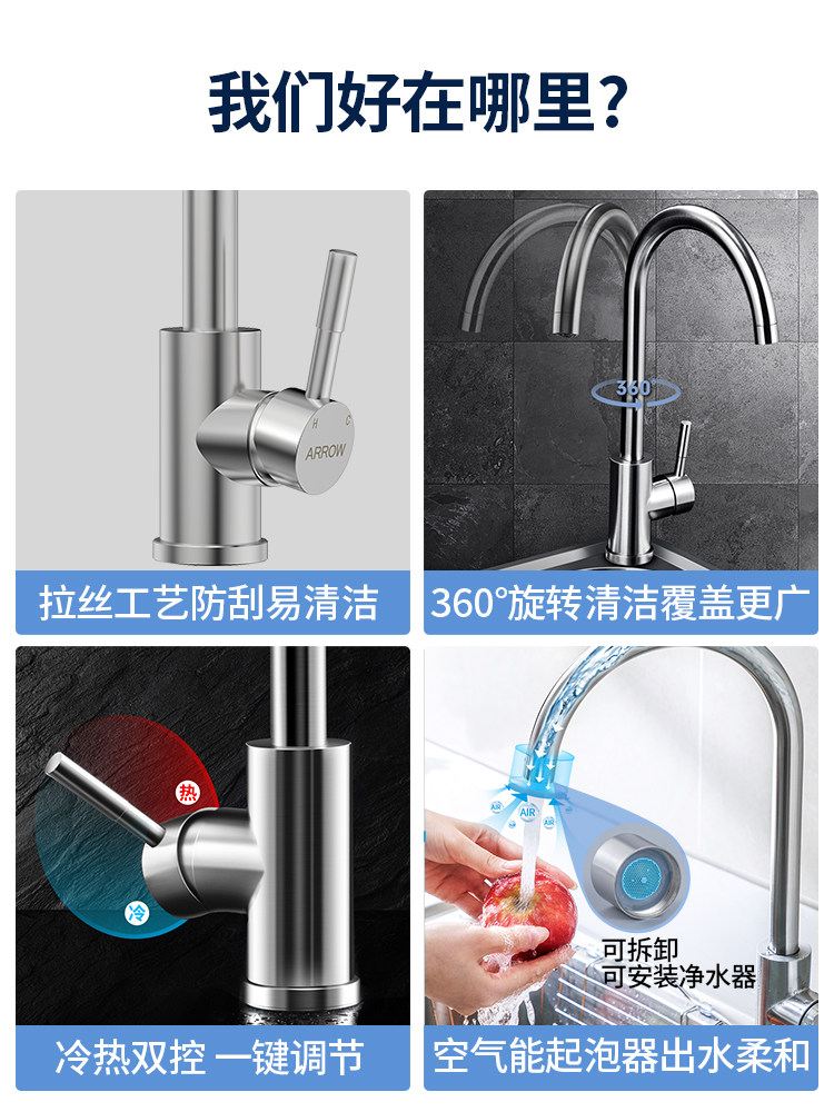 Type A stainless steel arc-shaped faucet (single cold) Type B stainless steel classic arc-shaped faucet (hot and cold) Type B2 stainless steel arc-shaped faucet copper aerator Type C stainless steel