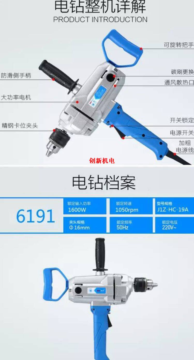 Hanchuan 6191 Electric Drill Aircraft Drill Paint Cement Paint Beating Ash Machine Batch Earth Mixer High Power Copper Motor