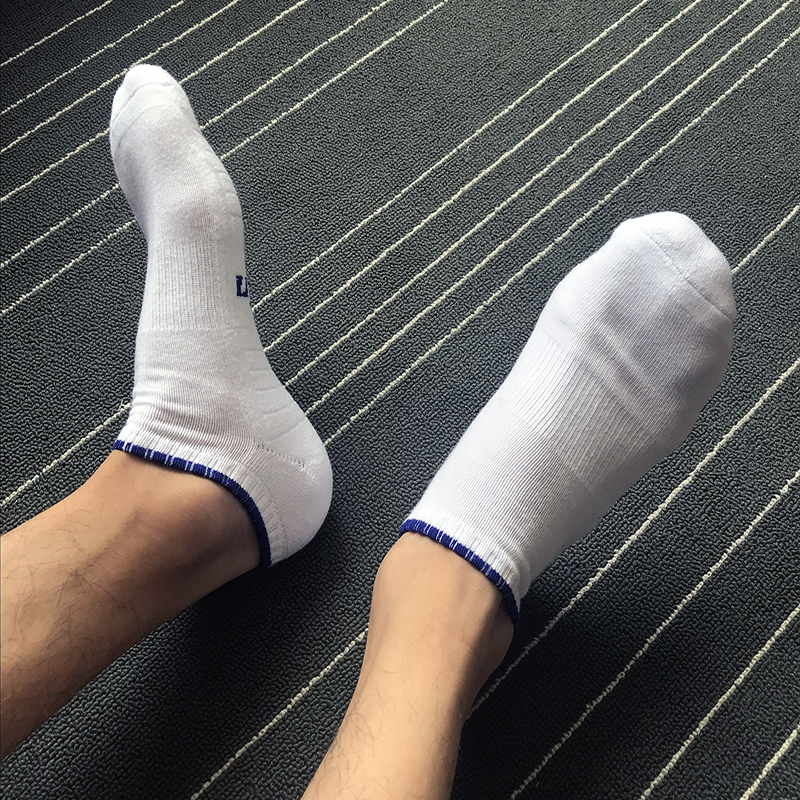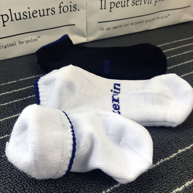 Zoprint Men Sports Socks Sweat and breathable towel Bottom Brief Thickening Trend Light Mouth Boat Socks Black & White Pure Cotton Short Socks