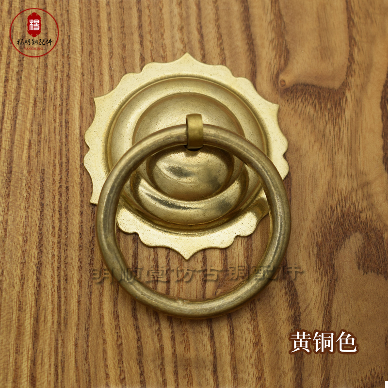 Antique Chinese pure copper door knocker small handle round single hole door handle Vintage old door lock wooden door handle surface mounted