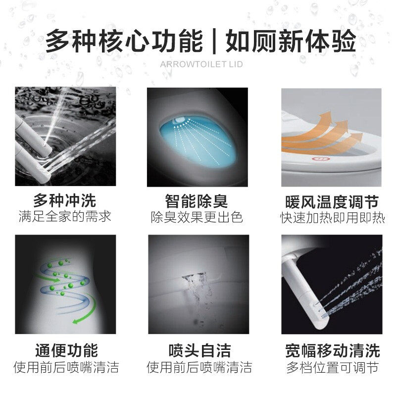 Drying Water temperature adjustment Buttocks washing Female washing Seat ring heating Water pressure adjustment Nozzle self-cleaning Automatic deodorization