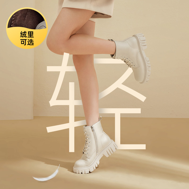 Camel outdoor shoes ladies 2021 autumn and winter New British thick soled leather boots casual thick heel plus velvet Martin boots women