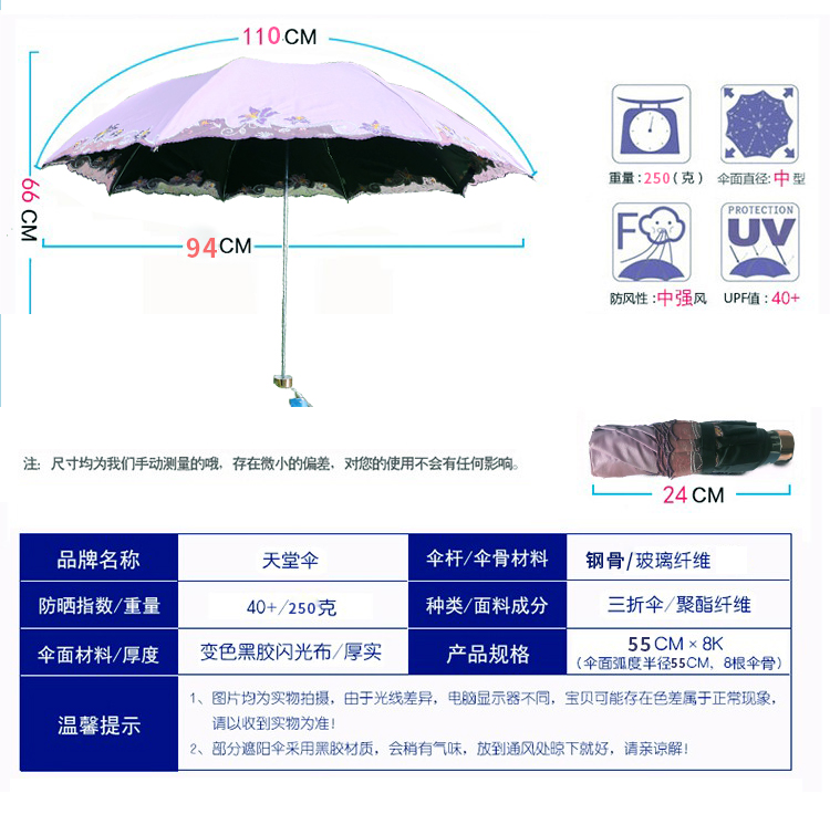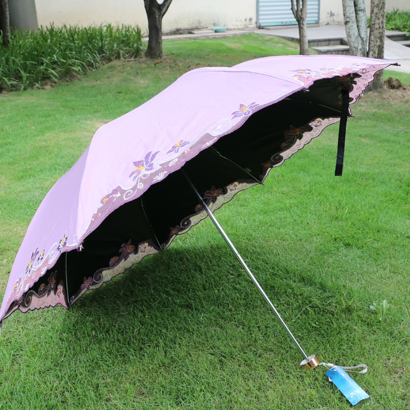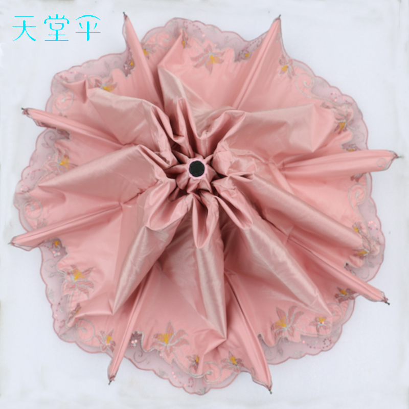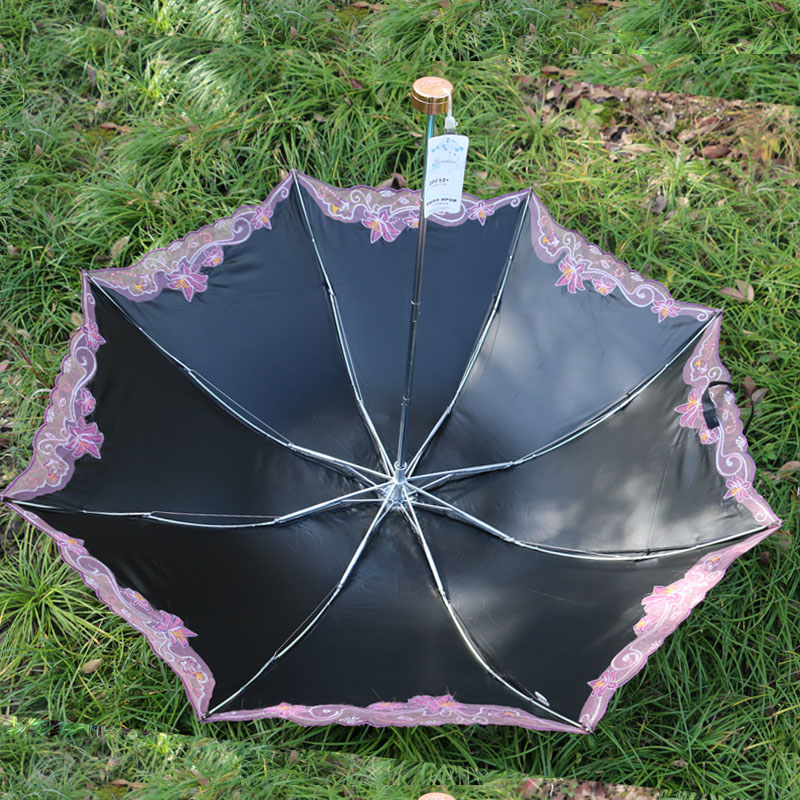 Paradise Umbrella Black Glue Umbrella Lace Umbrella Sunscreen Sun Protection Against UV Shading Umbrella Woman Folding Manual Sunny Umbrella