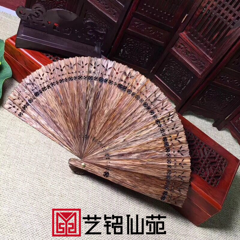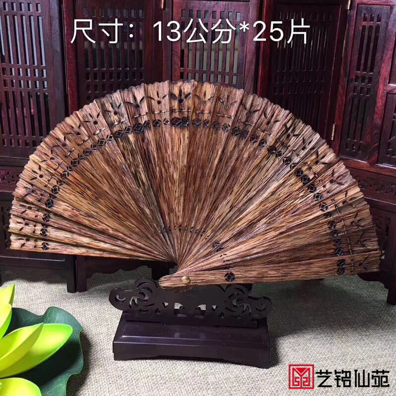 Natural fan carved hollow summer feather fan New Vietnam Nha Trang black oil agarwood group fan pendant standard color