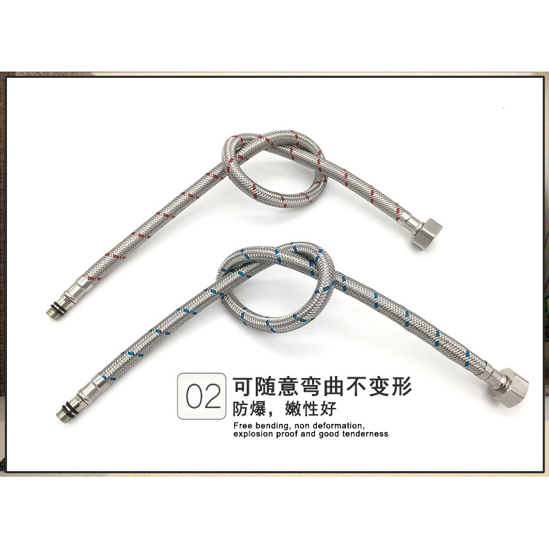 304 food grade stainless steel hot and cold metal braided sharp mouth hose explosion protection anti-pressure universal 4 water inlet pipe