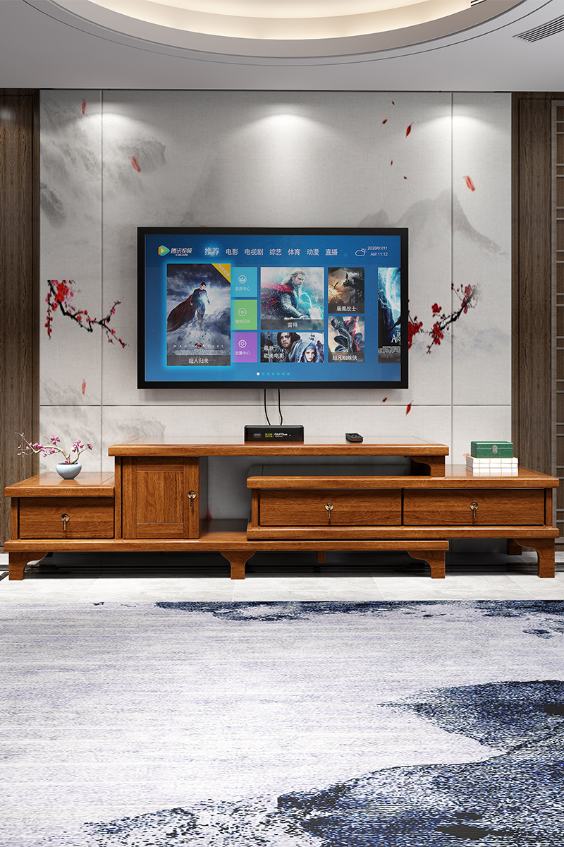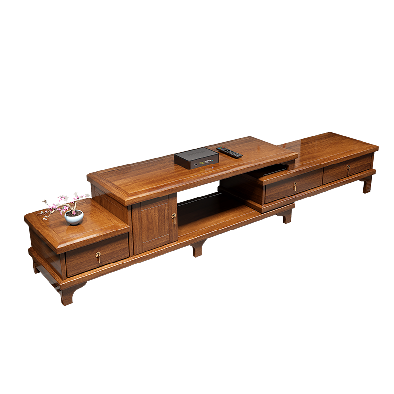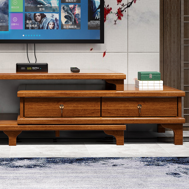New Chinese walnut solid wood TV cabinet modern minimalist telescopic floor cabinet coffee table combination multi-pumping storage cabinet