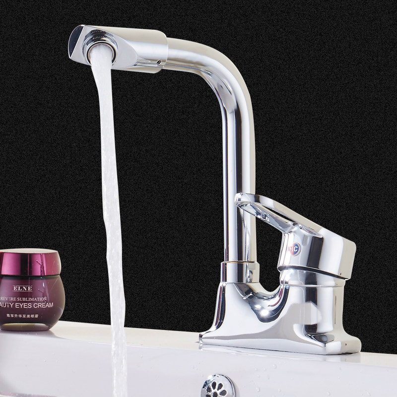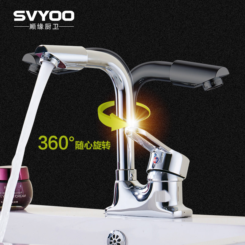 All-copper double hole basin hot and cold water faucet Rotatable bathroom powder room three-hole wash basin pool basin faucet