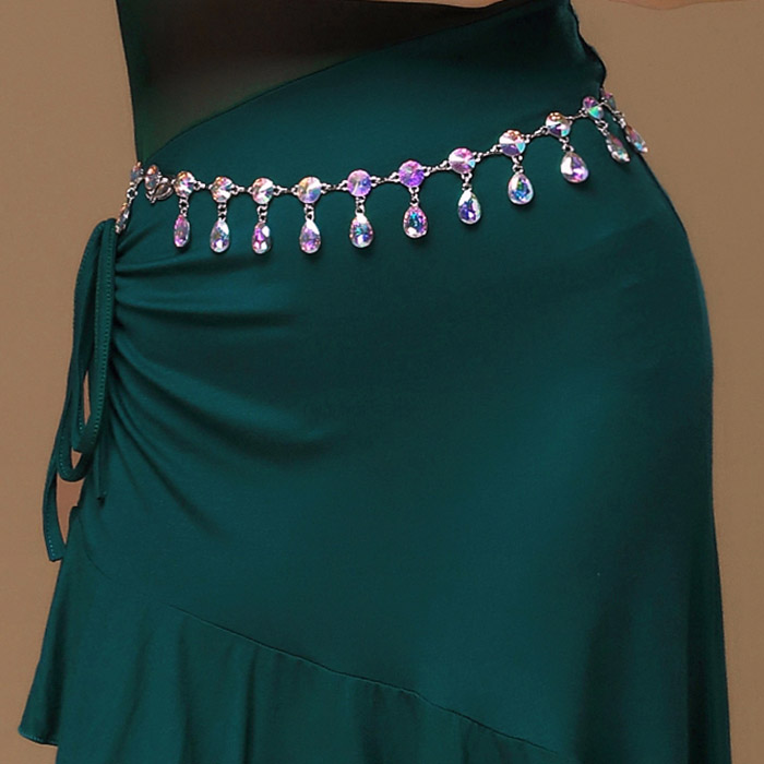 New Diamond Belly Leather Dance Waist Chain Water Drill Flow Su Drill Chain Skirt Chain Dance AB Phantom Water Drop