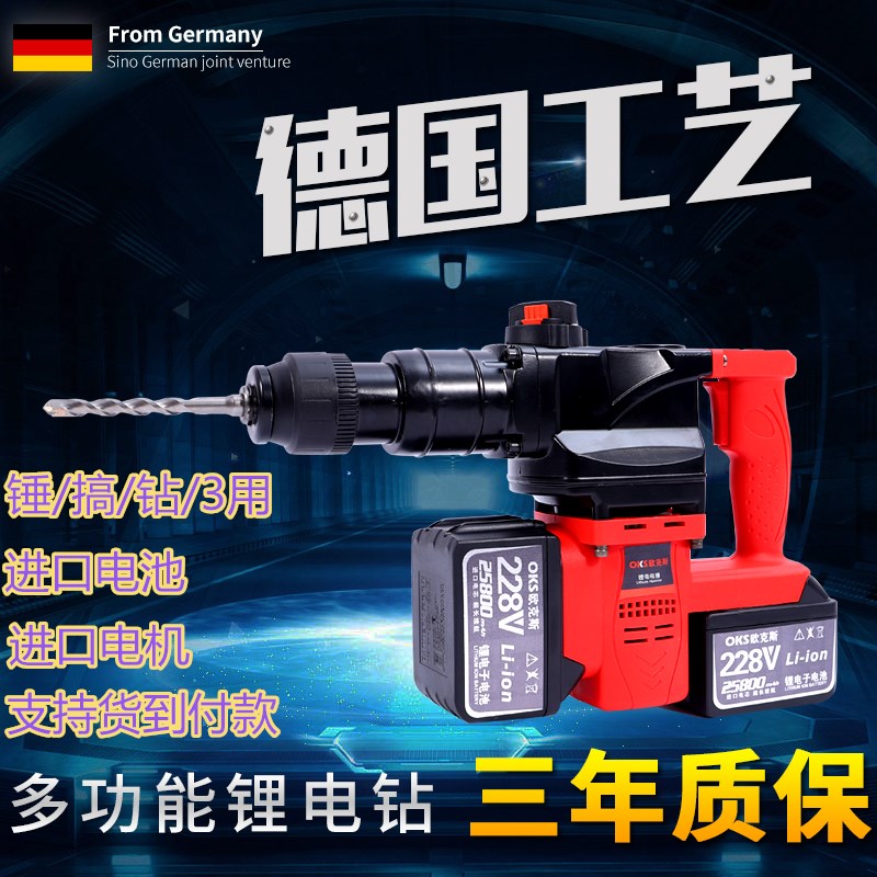 German rechargeable brushless electric hammer electric pick dual-use industrial grade impact drill concrete multifunctional electric impact drill-Taobao