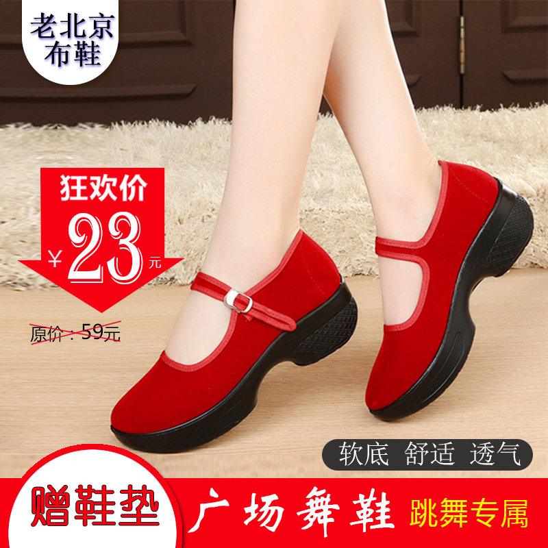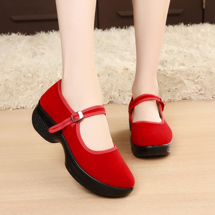 Square Dance Shoes Fall Dancing Shoes Soft Bottom Red New Medium-high Heel Old Beijing Cloth Shoes Woman and Fashion to Work-Taobao