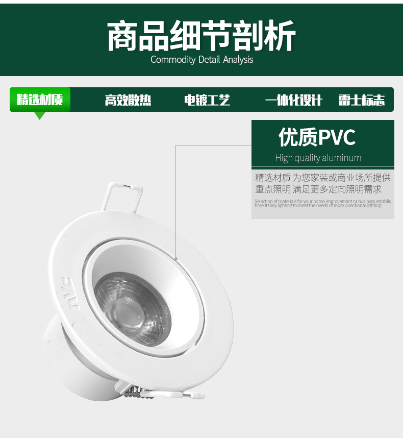 NVC LED spotlight official website ceiling light COB light source 5 5CM adjustable 7 5 cm embedded light NLED1193