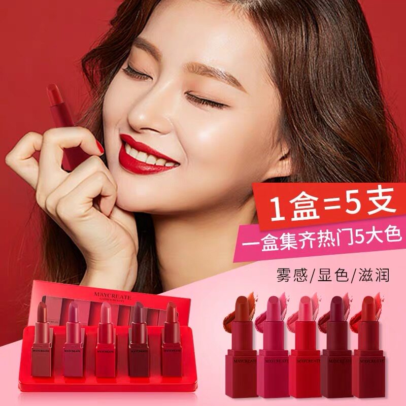 (5 packs) Bodybuilder Research MayCreate Lipstick Gift Box Set Matte Moisturizing Cream Tomato Color Net Red
