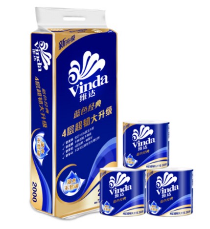 Vinda roll blue classic roll toilet paper 4 layer 200g each 10 volume 2000 grams 6 $ 180 yuan