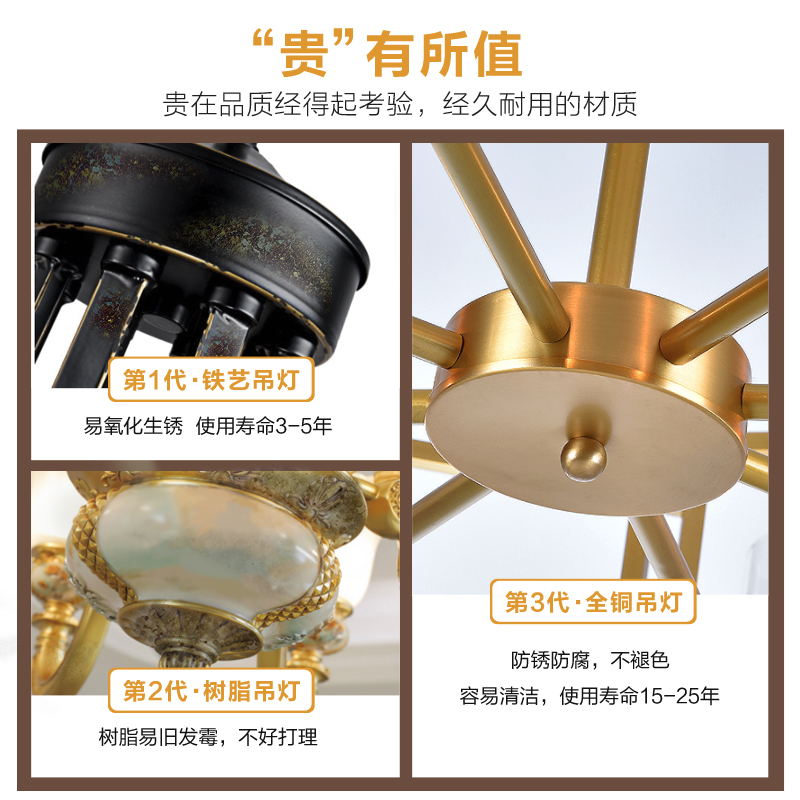 All-copper-copper chandelior with a light