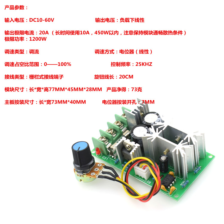 DC motor governor 12V24V36V48V high-power drive module PWM controller 20A current regulator
