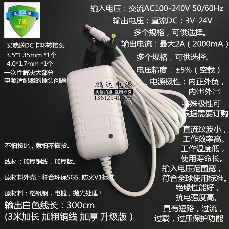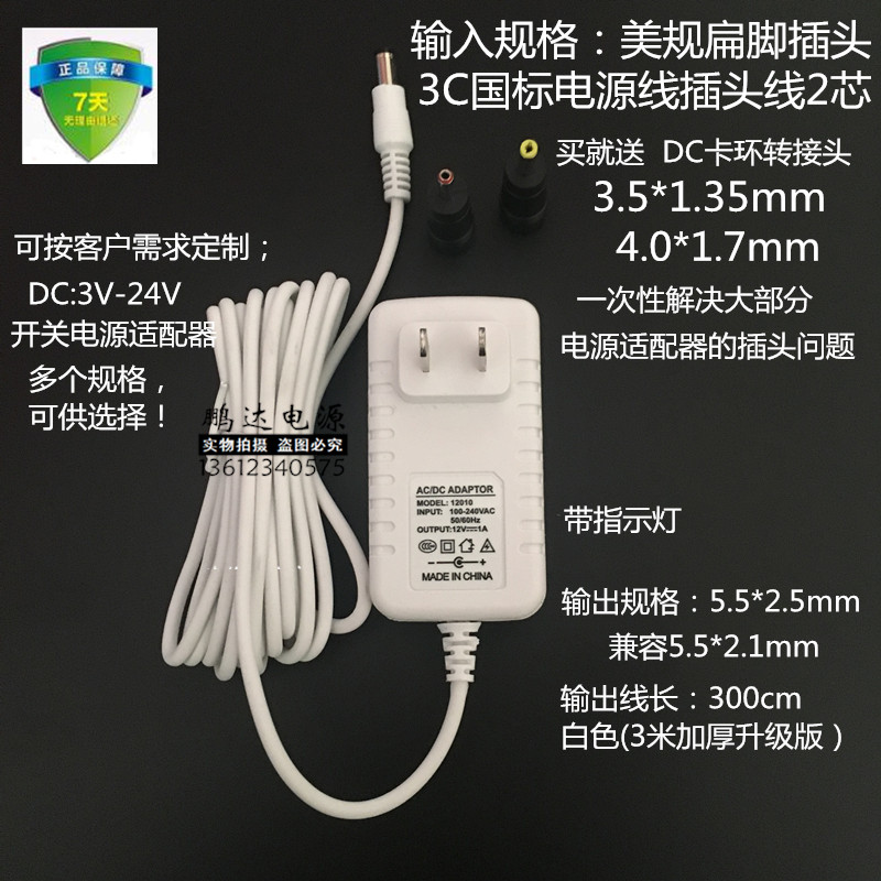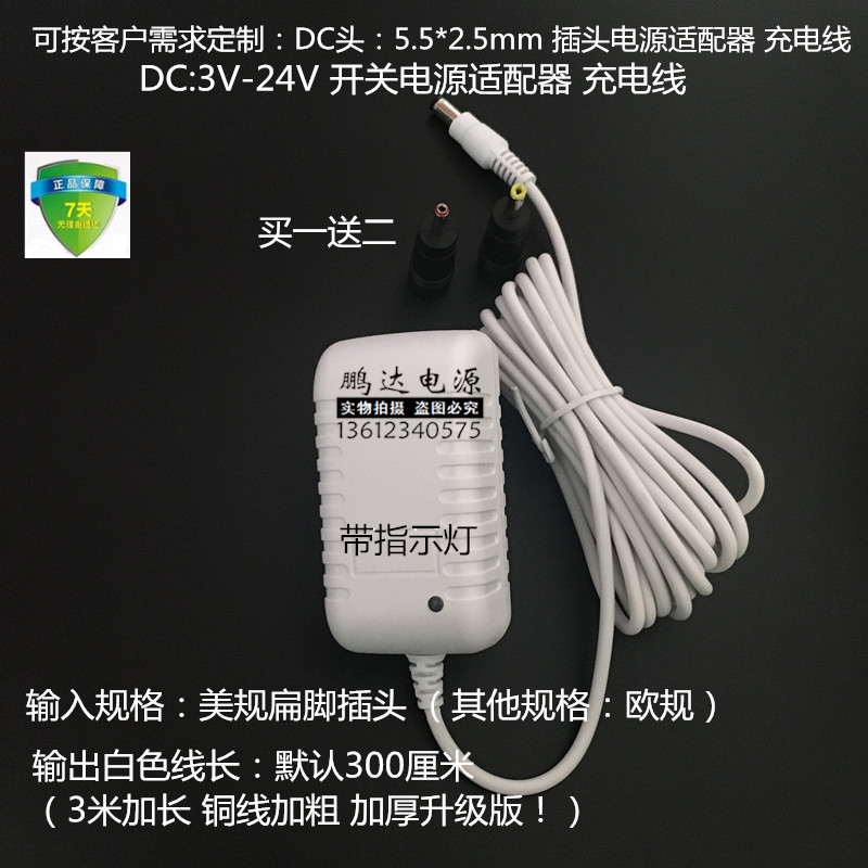 White 3 meters long line 5V1A3V1A4 5V1A6V1A7 5V1A9V1A12V2A switching power adapter
