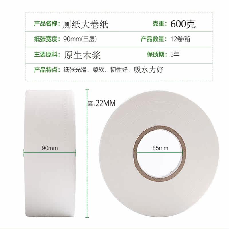 Commercial large stock market paper rolls paper rolls toilet paper whole boxes 12 volumes hotel toilet paper sanitary towels 600 gr-three-layer rolls paper