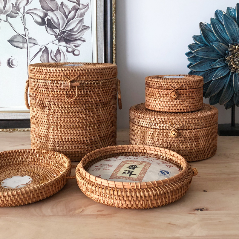 Vietnamese rattan handmade storage seven cakes tea cans Tuocha loose tea Pu'er tea box packaging box gift storage tea cans