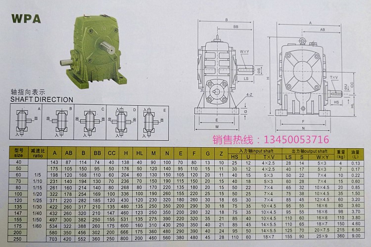 WPA WPS worm gear reducer gearbox reducer 80# speed ratio 10 to 60 ratio copper worm gear reducer