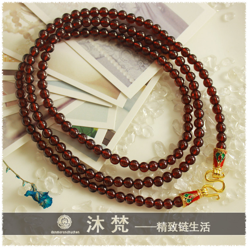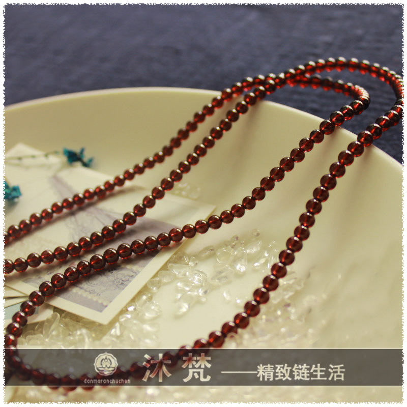 Upscale Thai Buddhist chain sub 4mm pomegranate stone ladies hang necklace wool coat chain long version