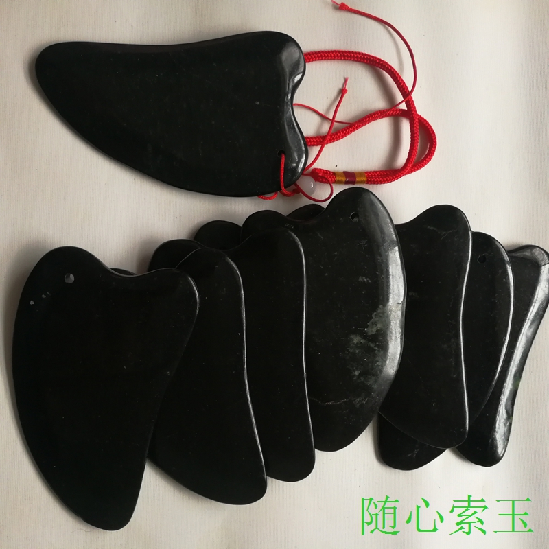 Dark green jade gua sha board facial massager meridian universal to the whole body