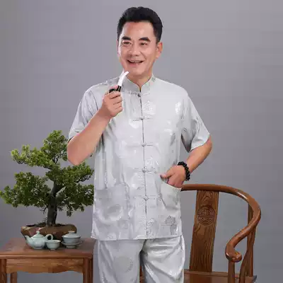 Fu short sleeve set Burgundy (non-Big Red) blessing short sleeve set beige blessing short sleeve set Blue Gray blessed short sleeve set white blessed short sleeve set White