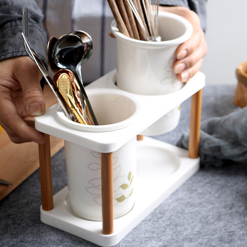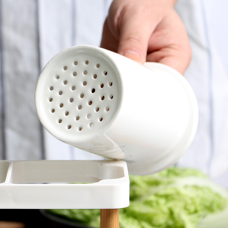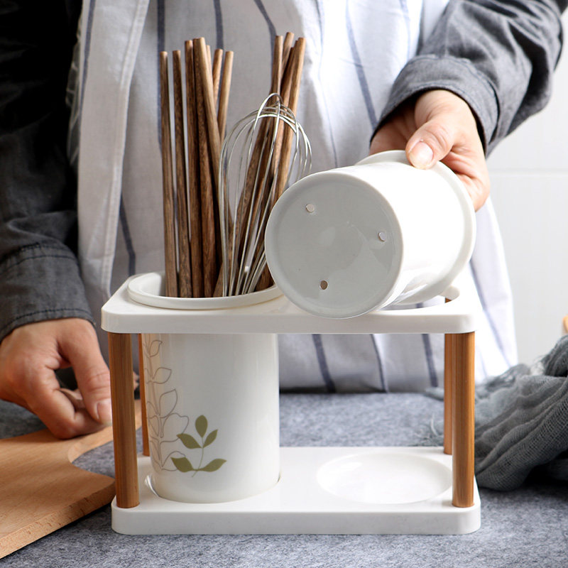 Creative bamboo and wood ceramic chopsticks tube chopsticks cage anti-mold drain chopsticks holder storage knife and fork spoon chopsticks box