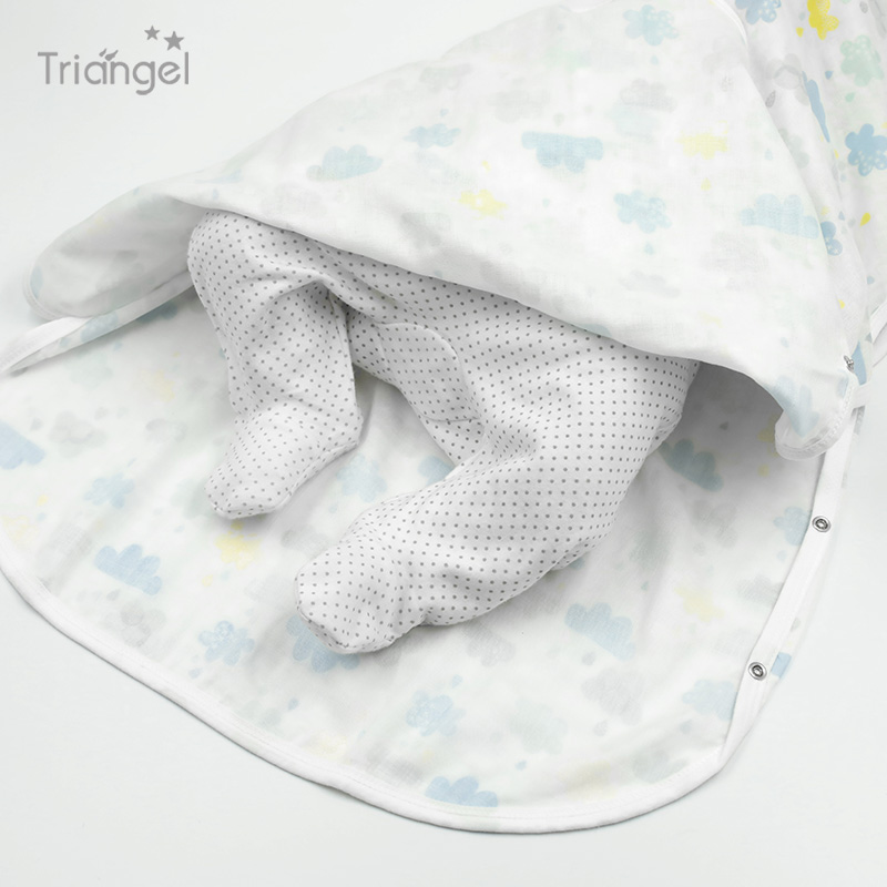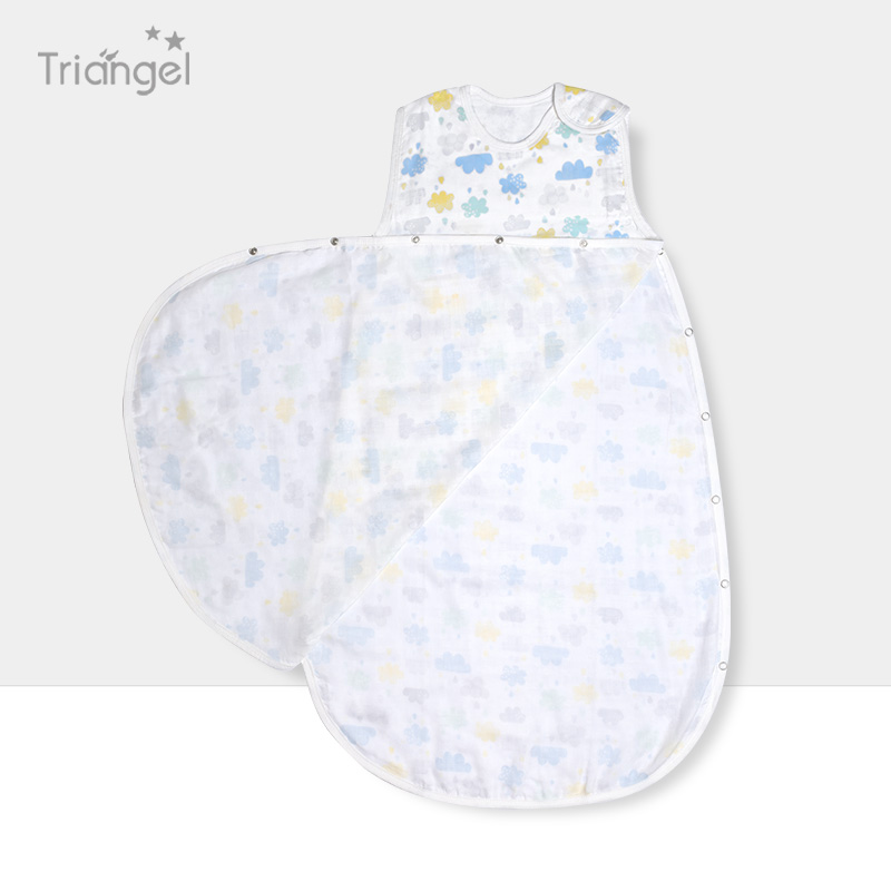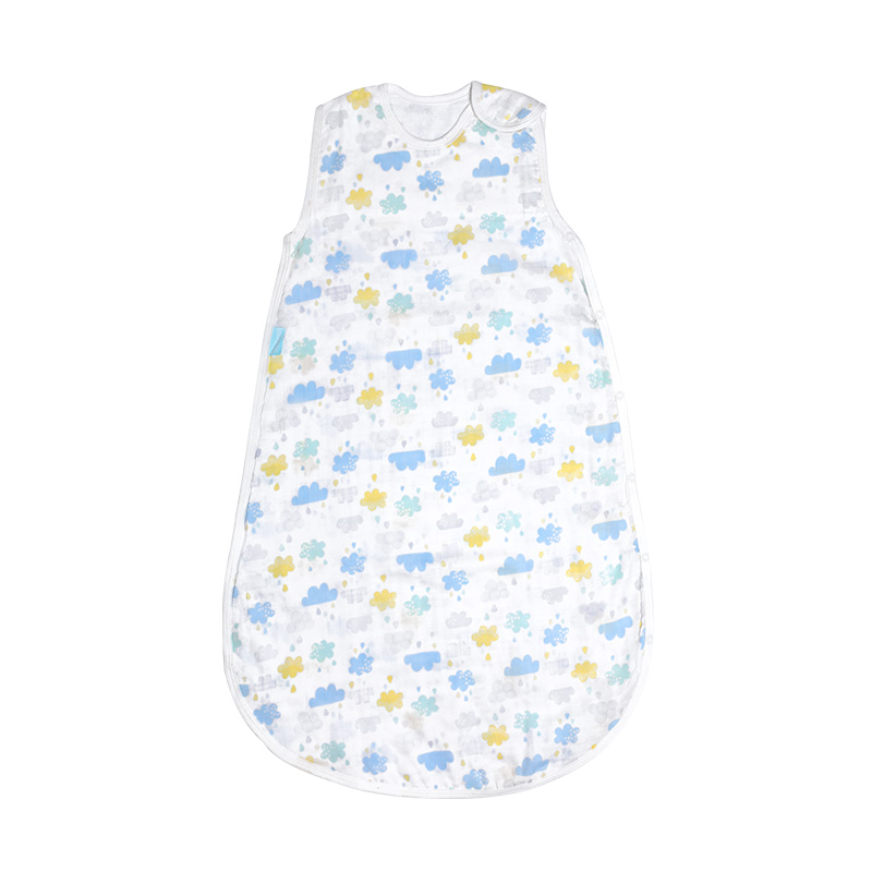 Double-layer bamboo fiber gauze baby one-piece sleeping bag summer ultra-thin baby vest type anti-kick quilt air-conditioned room belly protection