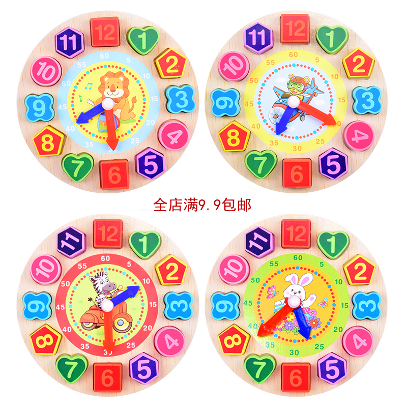 Children's Digital Beaded Clock Wooden Puzzle Time Cognitive Shape Matching Baby early education educational toys