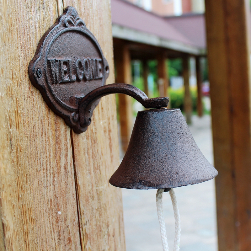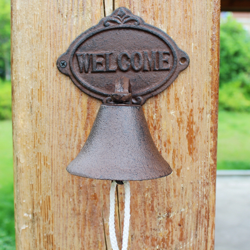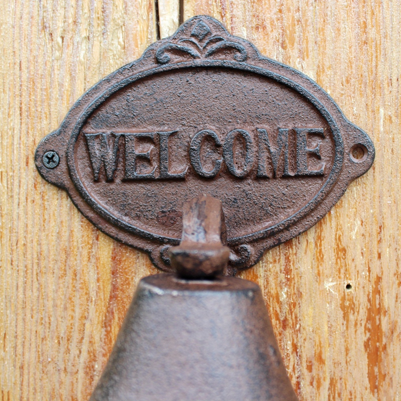 European retro nostalgic cast iron welcome card hand-cranked doorbell wrought iron bell courtyard home wall hanging decorative doorbell