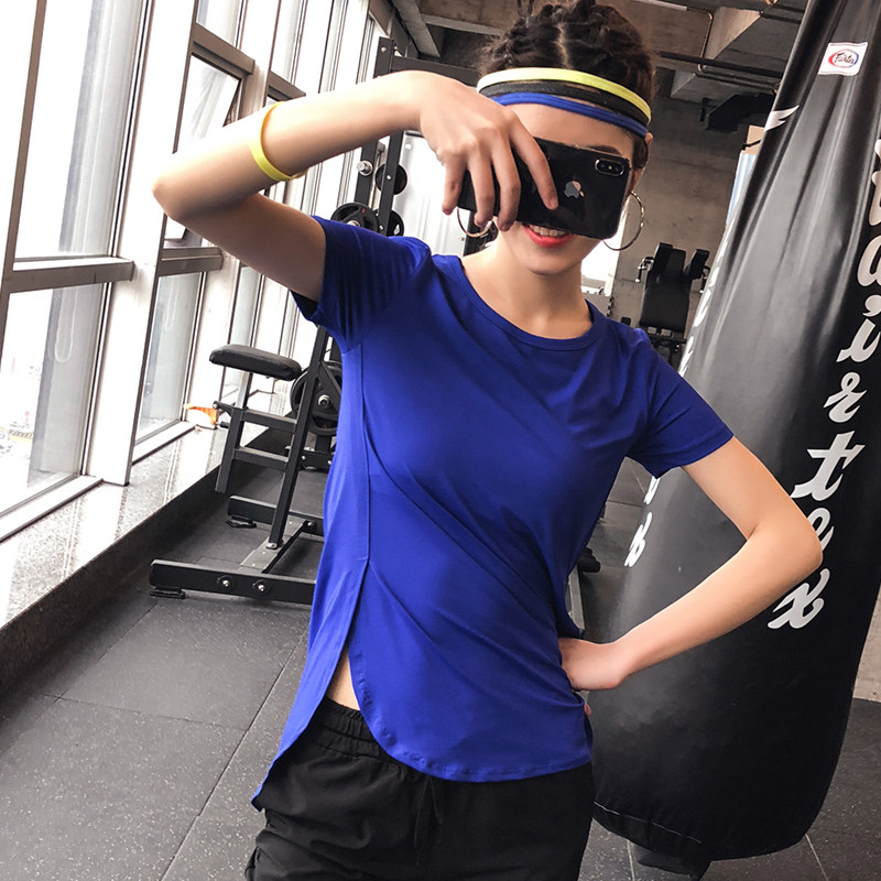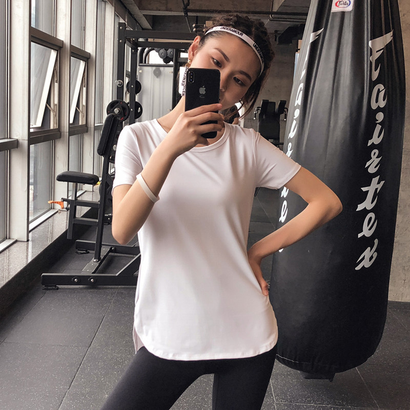 White sports short sleeve woman summer loose mid-long fitness clothes thin shirt covering hips yoga tops