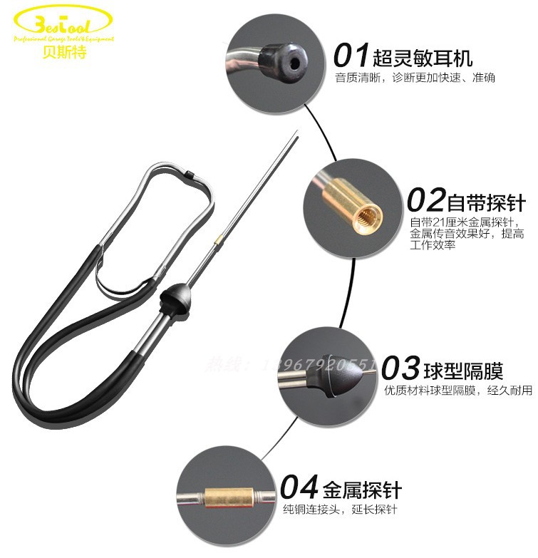 Stainless steel listening rod audio rod car engine stethoscope machine equipment listening sound