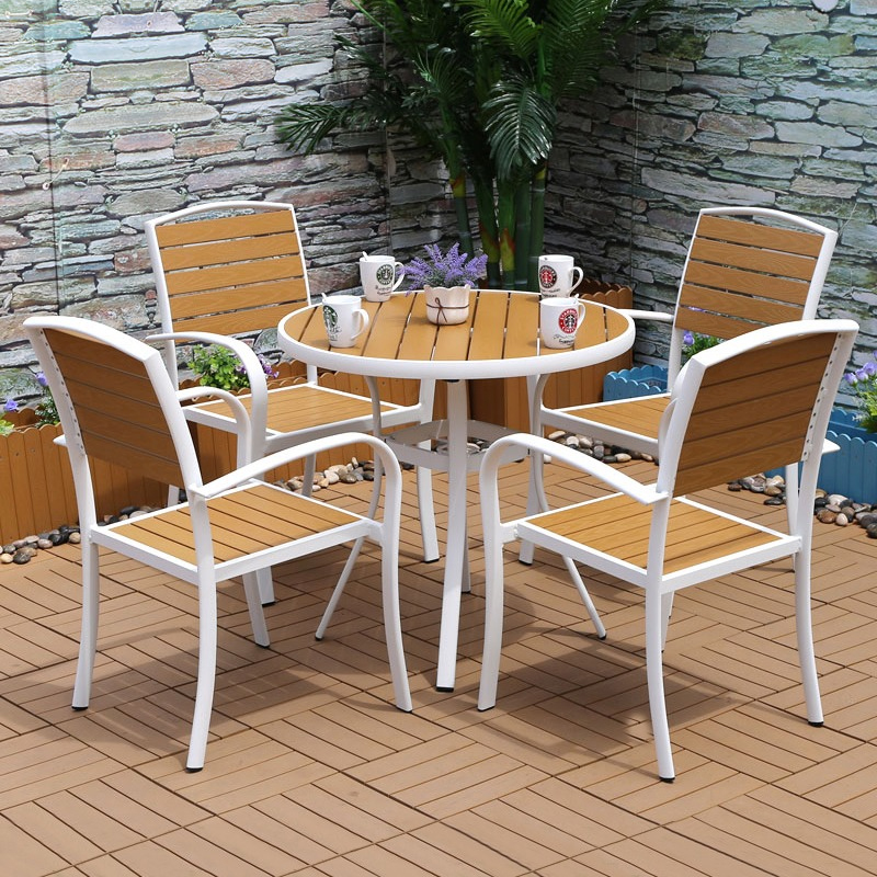 Yuanmao Nordic outdoor leisure table and chairs plastic wood preservative wood table outdoor table and chair courtyard outdoor waterproof sunscreen