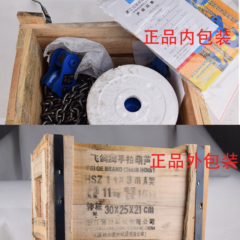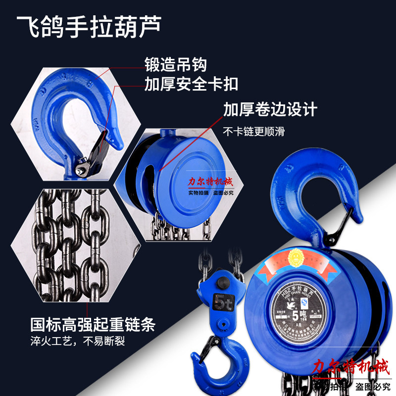 Flying pigeon brand hand-pulled hoist 1 ton 2T3T5T3 meters Hangzhou Wulin Guanlin manual inverted chain does not fall 6m